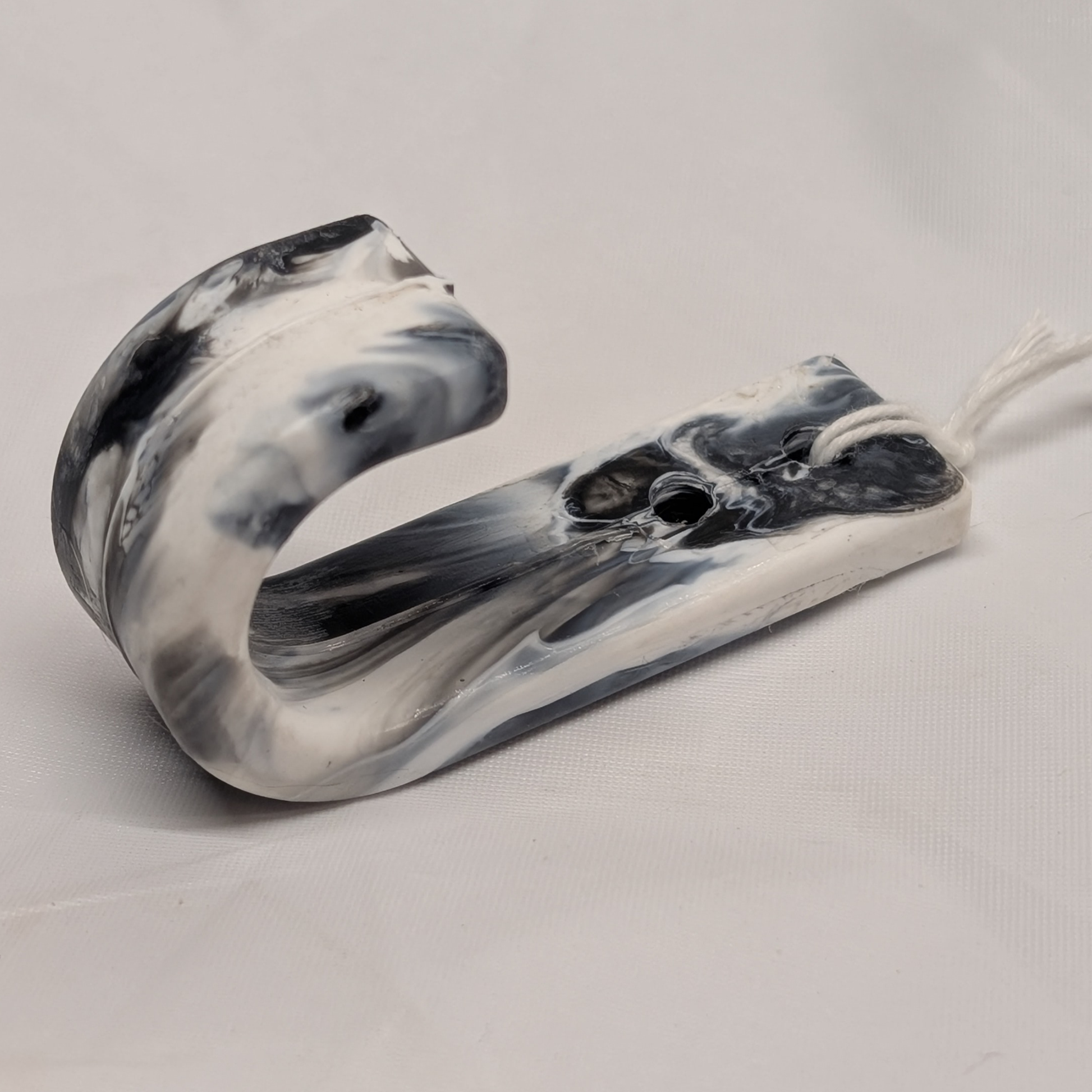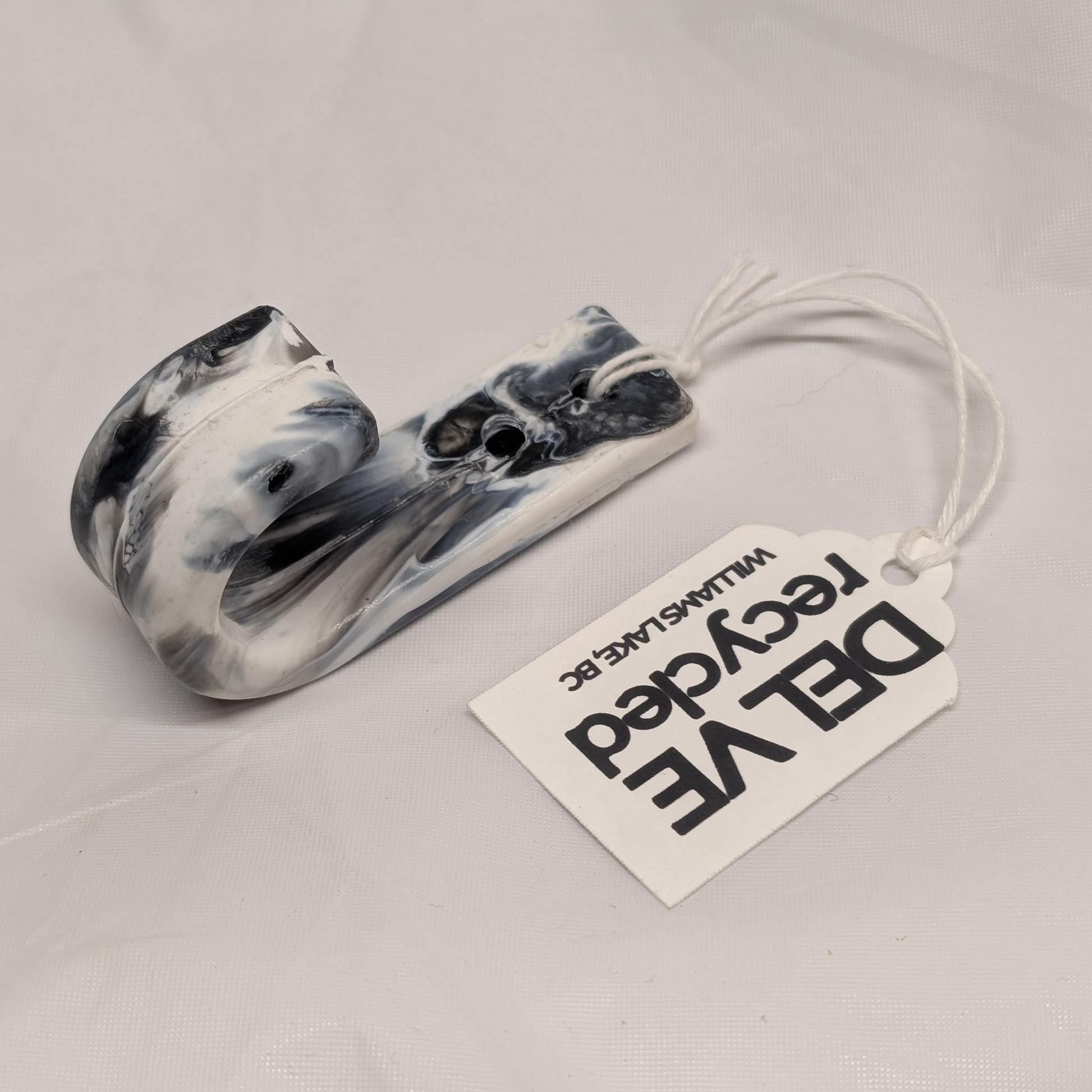 A sturdy, minimal wall hook made from 100% locally recycled plastic. Created in small batches using locally collected #2 (HDPE) plastics - each hook is entirely unique in it's color mix and swirl pattern.