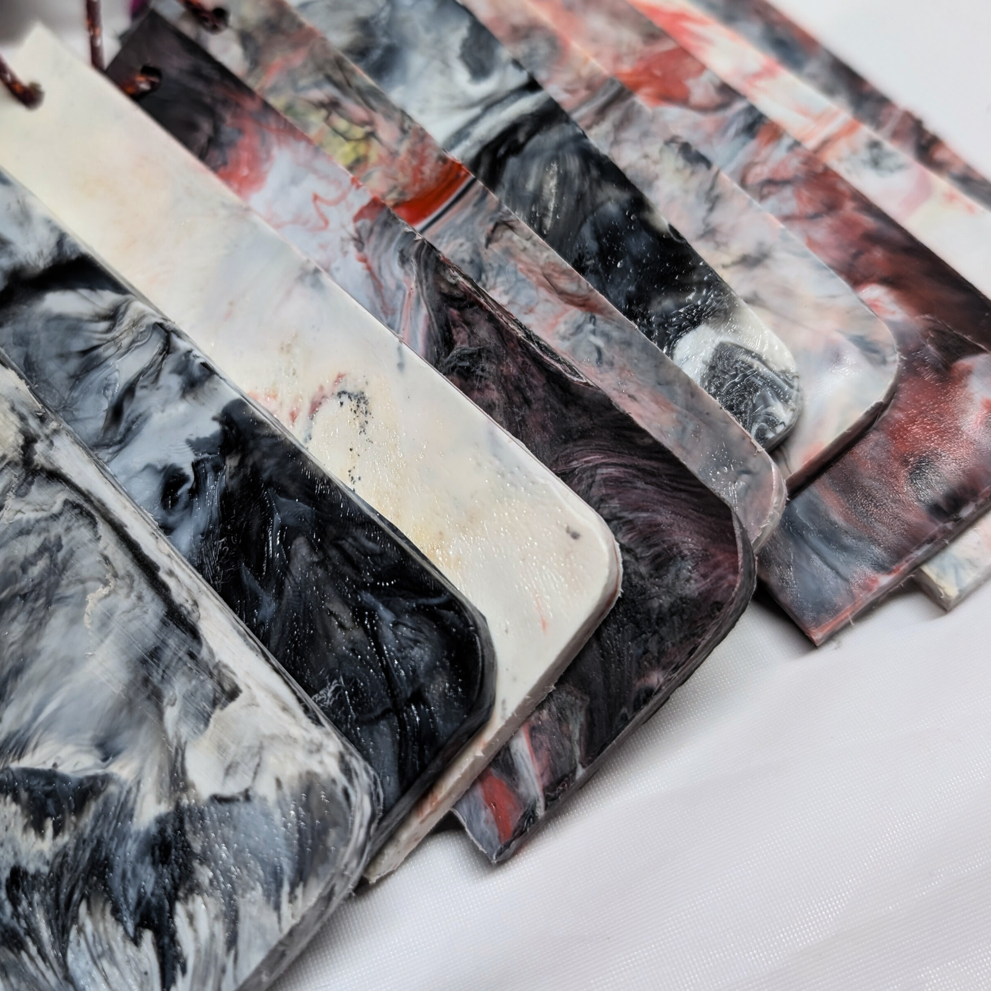 The colors and patters vary with each batch - each scraper has its own look.
